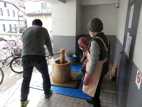 今朝はマンションの自治会で毎年恒例餅搗きでした。管理人は餅が嫌いなので、見学と他のものを食べてきました。15キロの餅をついたようです。すごい・・・。